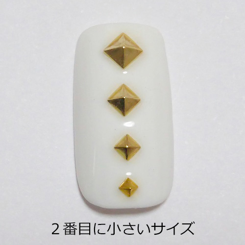 【日本製,made in Japan】ネイルパーツ・デコパーツ・ジェルネイルやデコアートに最適♪ネイルパーツ Nail Parts 高級感溢れる究極3Dスタッズスクエアピラミッド(50ヶ入) カラー:ゴールド 数量:50個入り サイズ:(H×W)2mm×2mm