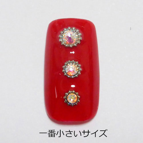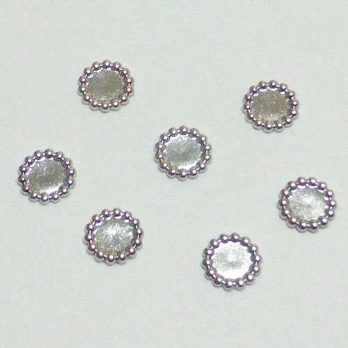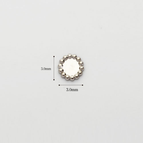 【日本製,made in Japan】ネイルパーツ・デコパーツ・ジェルネイルやデコアートに最適♪ネイルパーツ Nail Parts ブリオン囲み風ストーンディッシュスタッズ(30ヶ入)SS5用 ストーンを細かいブリオンで囲む手間を省き、施術時間の短縮にもなる優れもの!!お皿の上にストーンを置くだけで、ブリオンで囲んだような仕上がりに出来ます。お皿にジェルを入れて固めてもかわいいです。 カラー:シルバー 数量:30個入り サイズ:S、SS5用