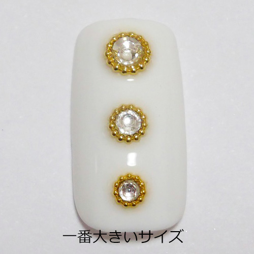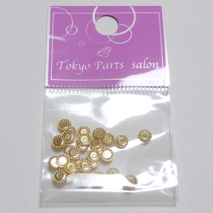 【日本製,made in Japan】ネイルパーツ・デコパーツ・ジェルネイルやデコアートに最適♪ネイルパーツ Nail Parts ブリオン囲み風ストーンディッシュスタッズ(20ヶ入)SS9用 ストーンを細かいブリオンで囲む手間を省き、施術時間の短縮にもなる優れもの!!お皿の上にストーンを置くだけで、ブリオンで囲んだような仕上がりに出来ます。お皿にジェルを入れて固めてもかわいいです。 カラー:ゴールド 数量:20個入り サイズ:L、SS9用