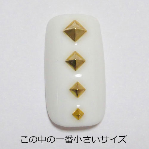 【日本製,made in Japan】ネイルパーツ・デコパーツ・ジェルネイルやデコアートに最適♪ネイルパーツ Nail Parts 高級感溢れる究極3Dスタッズスクエアピラミッド(50ヶ入) カラー:ゴールド 数量:50個入り サイズ:(H×W)1.5mm×1.5mm